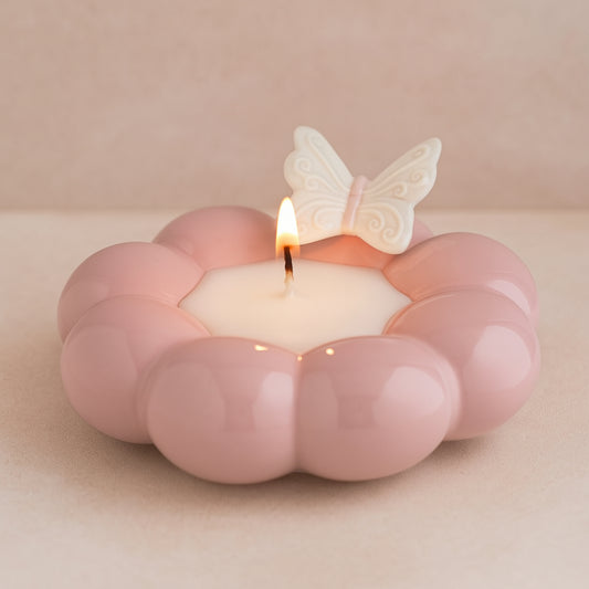 Ilary Queen Porta Candela Farfalla in Porcellana H 14 cm Rosa