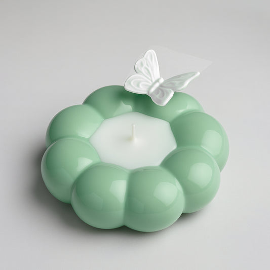 Ilary Queen Porta Candela Farfalla in Porcellana H 14 cm Verde