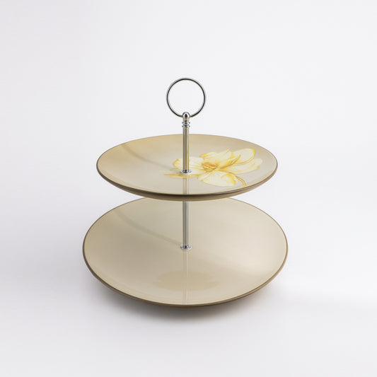 Noritale Etagere Alzata 2 Piani Porcellana Fiore Giallo H 27 cm