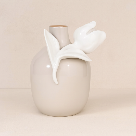 Dea Capodimonte Vaso Tortora con Rosa Bianca H 16x13 cm