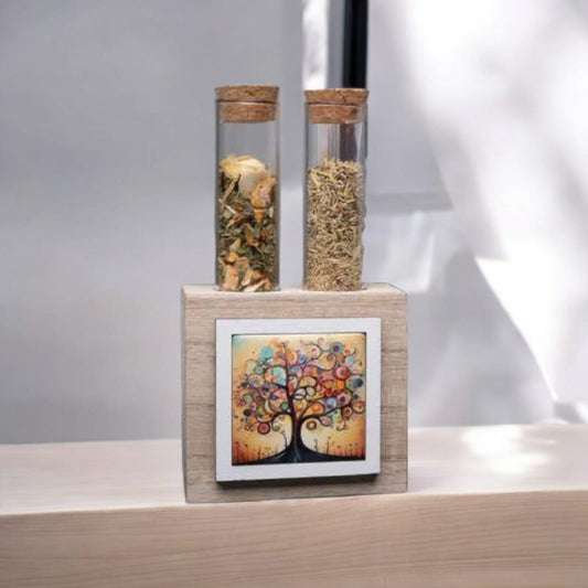 Cuorematto Wooden Spice Rack with Tree of Life Decoration - D9054