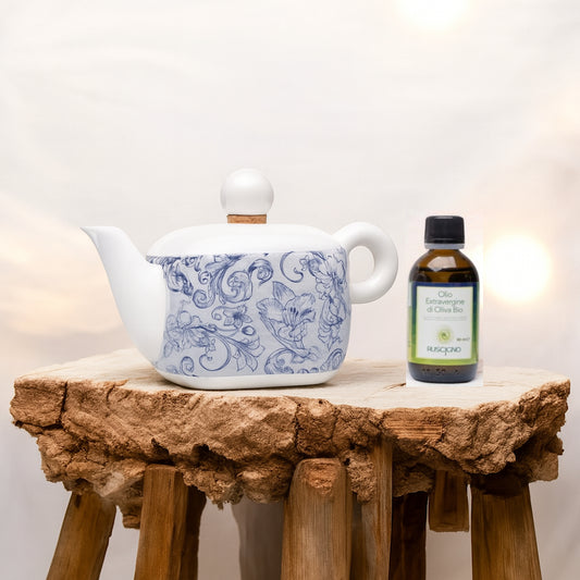 Cuorematto Oil cruet cm 18X10X12 in porcelain with Frantoio Ruscigno oil D9047