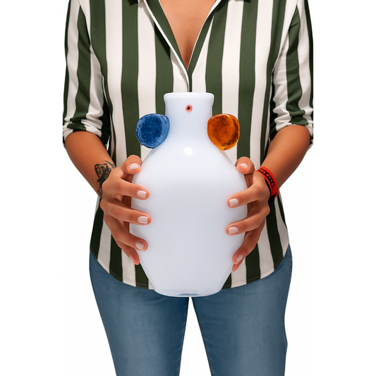 Cuorematto Glass Vase 28 cm White Amber and Blue Design
