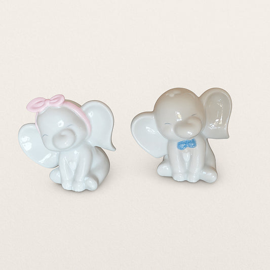 Ilary Queen Porcelain Elephant Pink/Light Blue Bow H 9 cm