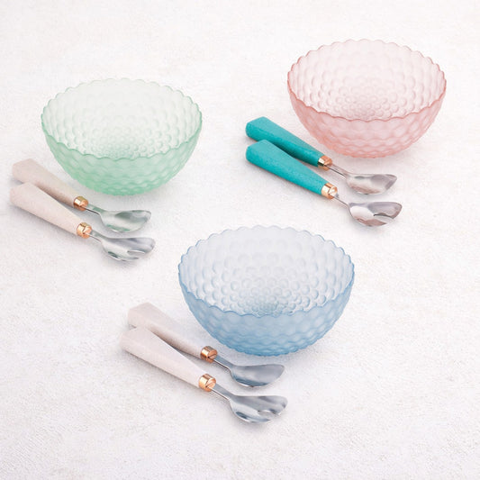 Madrhélen Paris Insalatiera con 2 Posate in Vetro Bubble 23x10 cm