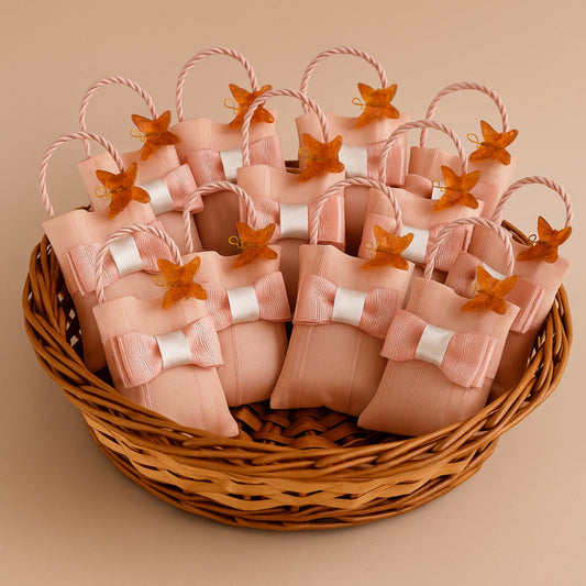 9×9 cm Powder Pink Confetti Holder Cushion with Flower Complete with Lastminute Promo packaging