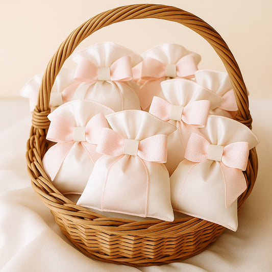 Set of 10 Moiré Chantilly Sachets with Lace and Bow Complete with Last Minute Promo packaging