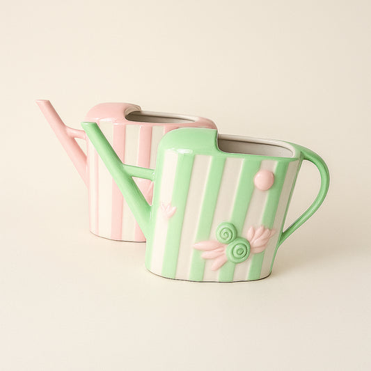Ad Creation Pair of Shabby Pink and Green Ceramic Watering Cans 10x11 cm