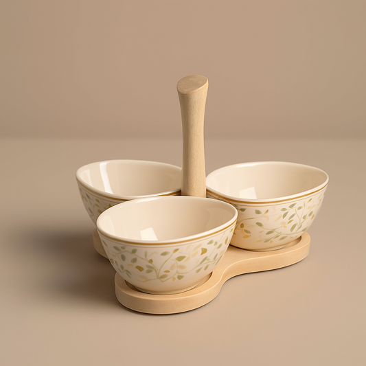 Brandani Porcelain Appetizer Dish Decorated with Wooden Base 19.5x20x12.5 cm