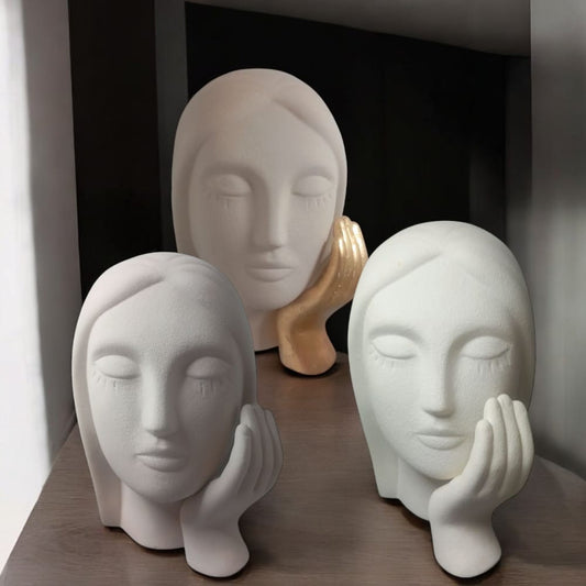 Ilary Queen Statue Woman's Face Hand Stoneware H 18 cm