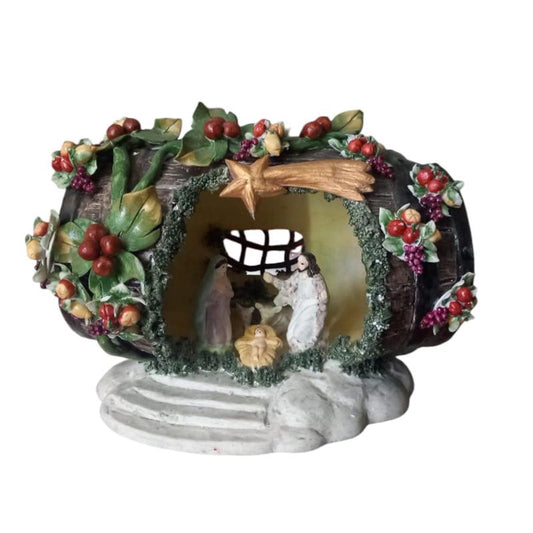 Arthesiana Nativity Scene in a Hand-Painted Ceramic Barrel H 13x19x13 cm