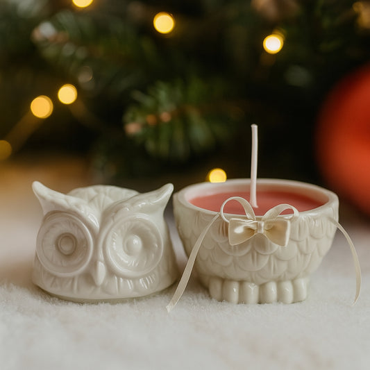 Arthesiana White Porcelain Owl with Candle 9x8cm