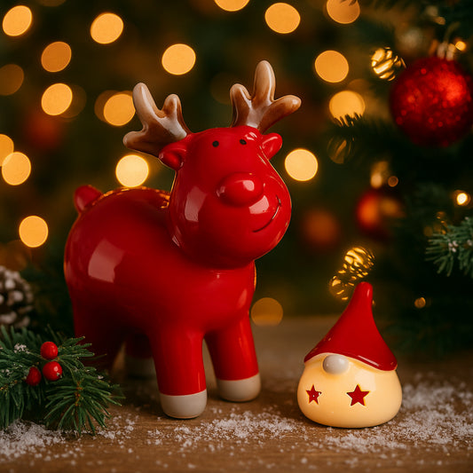 Santa Claus Reindeer Rudolph Red Ceramic H 14×10 cm