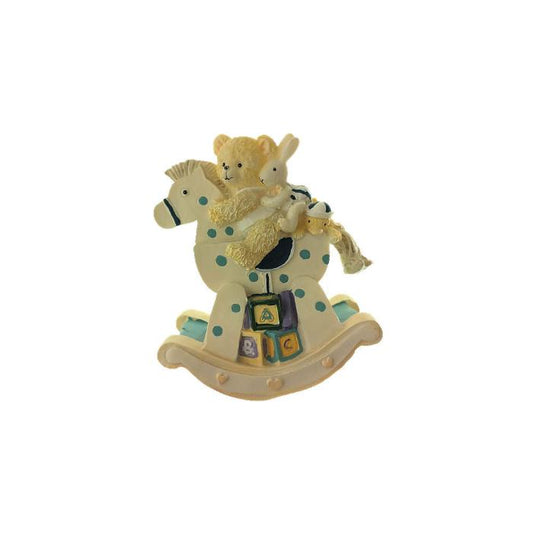 Carillon Orsetto Cavalluccio Dondolo Resina 15×13 cm Decorativo