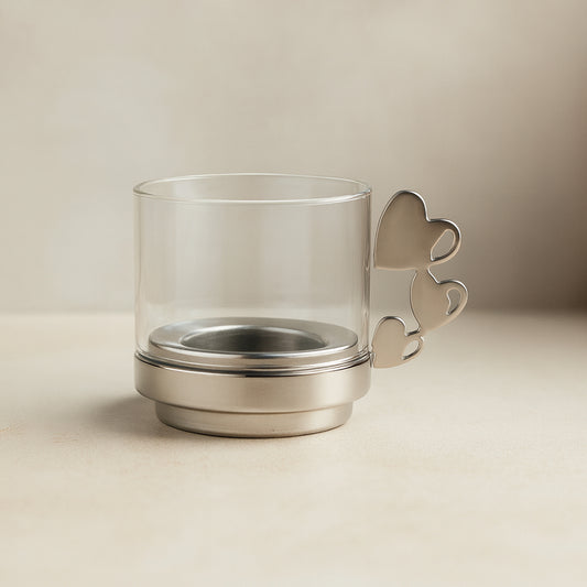 Sambonet Portacandela Cuori Vetro e Acciaio 10x8 cm