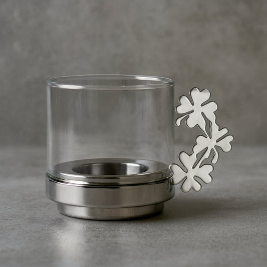 Sambonet Portacandela Quadrifoglio Vetro e Acciaio 10x8 cm