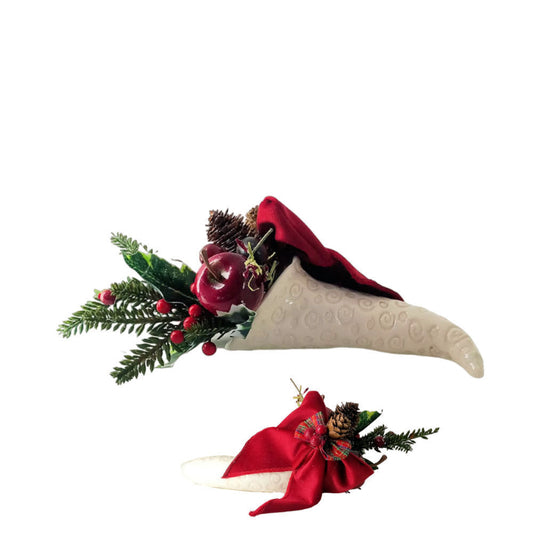 Noel Cornucopia Ceramica Fatta a Mano Natale 23x13 cm