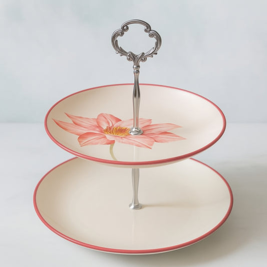 Noritale Etagere Alzata 2 Piani Porcellana Fiore Bordeaux H 27 cm