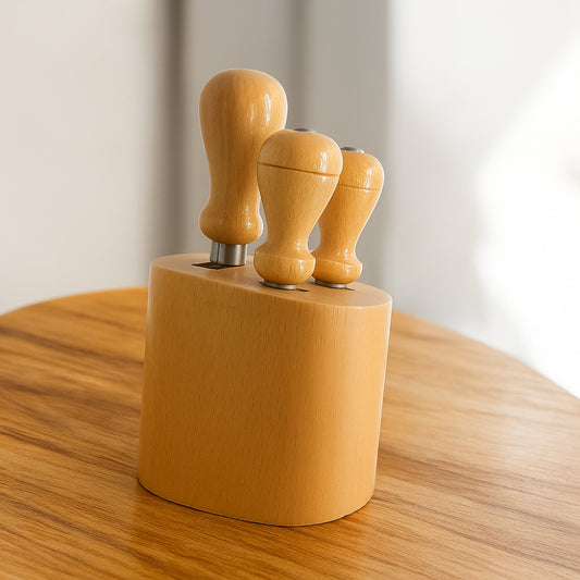 D&D Ceppo in Legno + Set 3 Utensili Formaggio 20 cm