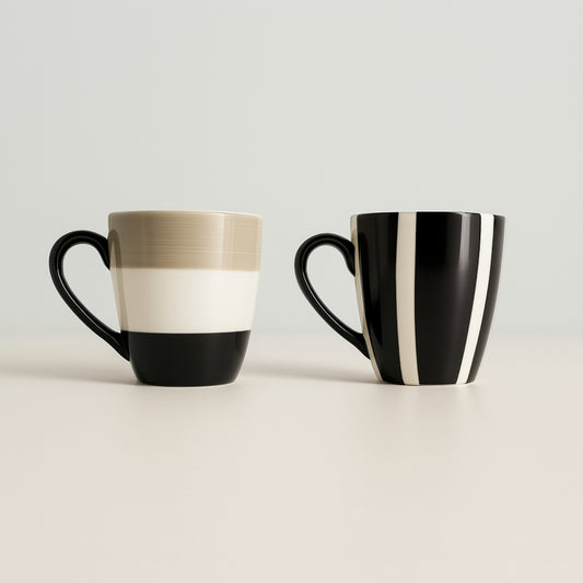 Bruno Evrard Mug 2pz Coppia Ceramica Black & White Design Moderno