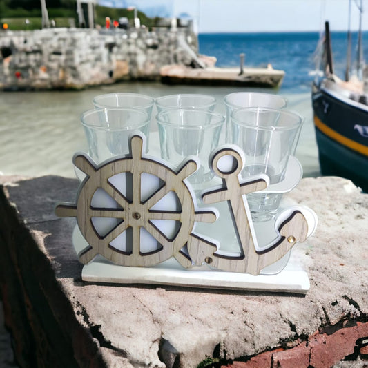 Negò Porta 6 Bicchierini Liquore Metallo Bianco Mare 10x17 cm