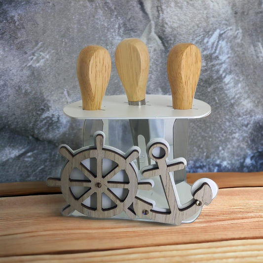Negò Porta Set Formaggio 3 Coltelli Metallo Mare 15x14 cm