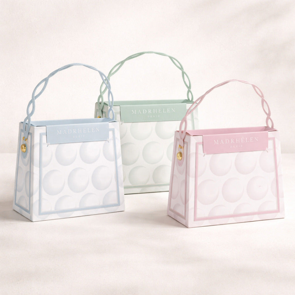 Curata nei dettagli ed elegante nello stile, la borsetta in carta della linea Bubble firmata Madrhélen Paris è pensata per valorizzare ogni confezione regalo con un’estetica raffinata e contemporanea.