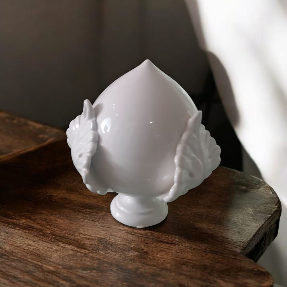 Il Pumo, con la sua forma armoniosa e il significato augurale, è un simbolo di rinascita, prosperità e bellezza. Questo esemplare firmato Dea Capodimonte è realizzato in ceramica bianca e curato nei dettagli da mani artigiane esperte.